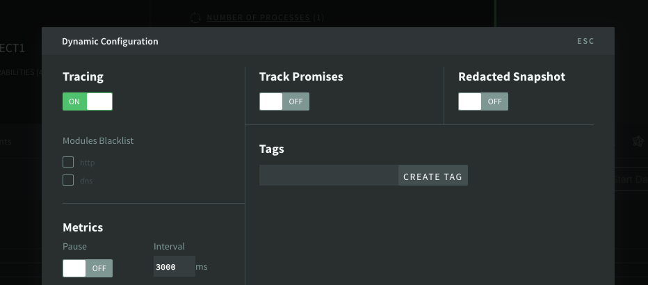 This action will activate and deactivate the trace option for a few seconds on the Process configuration