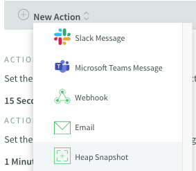 This one is the easiest Action to set up. Just select the Heap Snapshot option in the Actions drop-down menu.