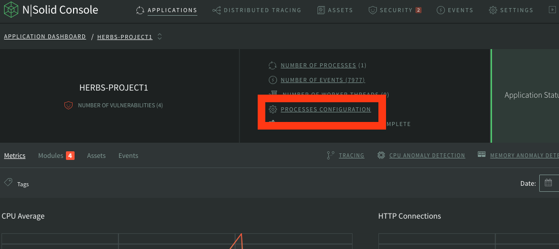 Click Processes in the Nav Bar to get to the Processes view. The default view shows all processes connected to N|Solid Console.