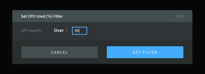 Note: Be careful about setting a very high value on your saved view's filter expression, such as 99% Heap, and then selecting an action that uses the same resource, such as Take Heap Snapshot. Taking intensive action at a very high ceiling is likely to negatively impact your application.