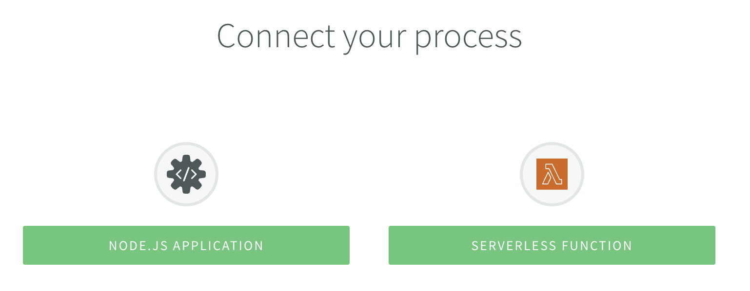 In the same page you can find the Connect your processes section. This section provides you with the necessary information to connect your processes or aws functions to the N|Solid Console.