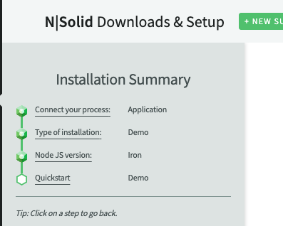 - Quickstart demo: This is a quick way to get started with N|Solid using a fake application, it allow you to see the N|Solid Console in action without having to install the N|Solid runtime in your application.