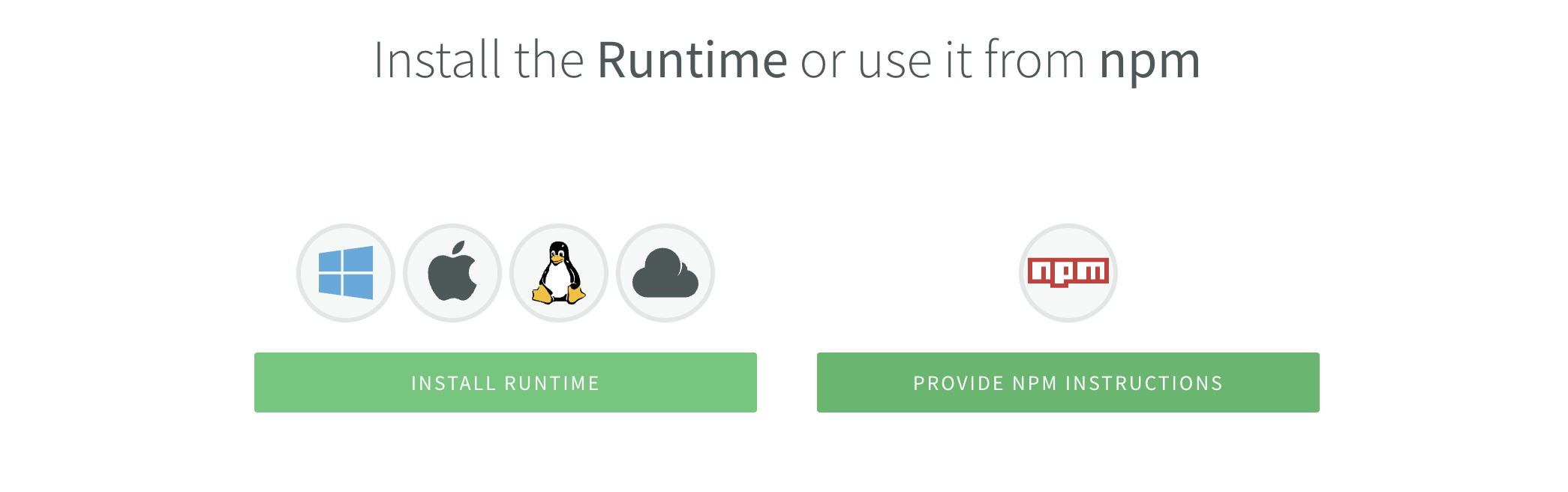 Production provide a deeper flow, where you will be able to install N|Solid in your application choosing between install the runtime via our binaries, npm or Docker.